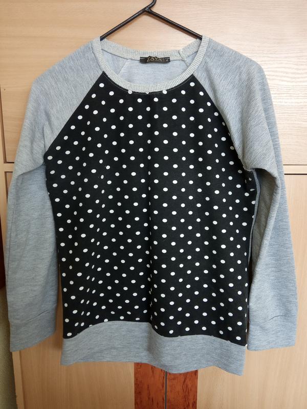 Стильная, трикотажная кофта, реглан в горошек Мягкая, приятная к телу ткань Замеры: Длина изделия 65, длина рукава(реглан) от шеи 68, ПОГ 49см ПОТ 46см ПОБ 47см