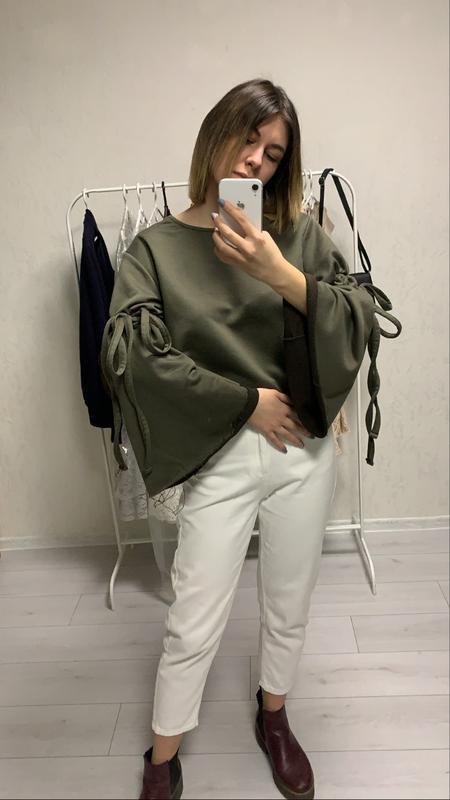 Стильный свитшот свободного кроя с необработанными краями Широкие рукава с завязками Размер 12 , подходит на S/M Ткань футер Состояние идеальное