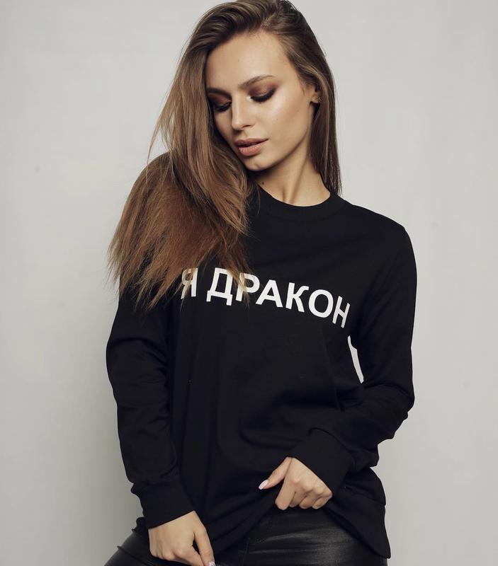Кофта {світшот} Я ДРАКОН Кофта {світшот} без капюшона з написом Я ДРАКОН {якісний друк не облізе після прання 100% гарантія } Тканина: м'який бавовняного трикотаж {дуже легкий не щільний} Розмір: Ідеально для S і M { але взагалі кофта оверсайз} Нова!