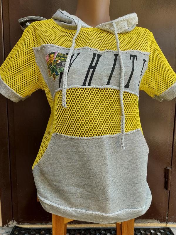 Оригинальный стильный свитшот сеточкой. Бюстик прикрыт. Состояние новой вещи. ПОГ 47, резинка внизу 47см, длина 57, плечи 39, рукав 19. Смотрите другие мои предложения😊