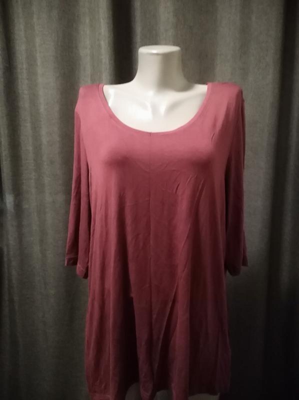 Легка, декольте глибоке і широке, рукав 3/4. Заміри: довжина виробу про спинці 69 см, плечі 45 см, напівобхват грудей 58.5 см, низ кофти 64 см, довжина рукава 37 см, внутрішній шов 23 див.