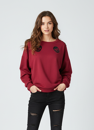Длина: 54 ПОГ: 56 ПОТ: 54 Плечи: 67 Длина рукава: 38 Состав: 100% polyester В жизни цвет бордовый, ближе к марсала если Вы не уверены, что размер Вам подойдет, рекомендую оформить заказ в точку выдачи Розетка, у которой есть примерочная