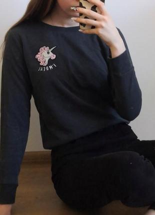 Милый свитшот с нашивкой в виде единогора 🥰 Состояние идеальное, практически не был в носке. Цвет не выгорел.