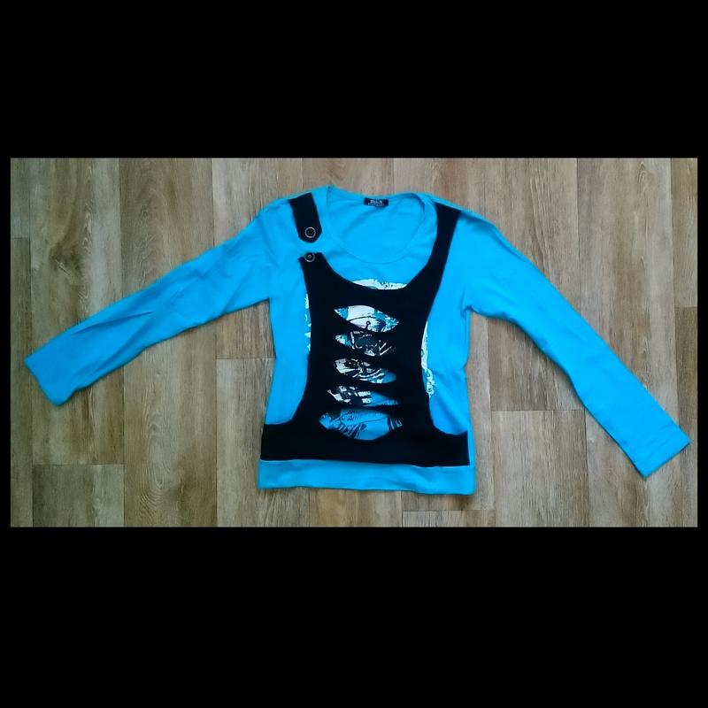 Свитшот женский, с чернобелым принтом и тканевой нашивкой. Есть пятнышко возле кнопки