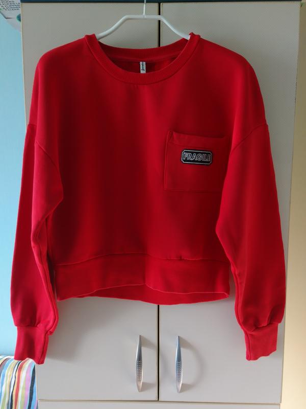 Утеплений, на легкій махрушке світшот Stradivarius, р. S - M, вільний, укорочений, колір - червоний, тканина - щільний трикотаж.