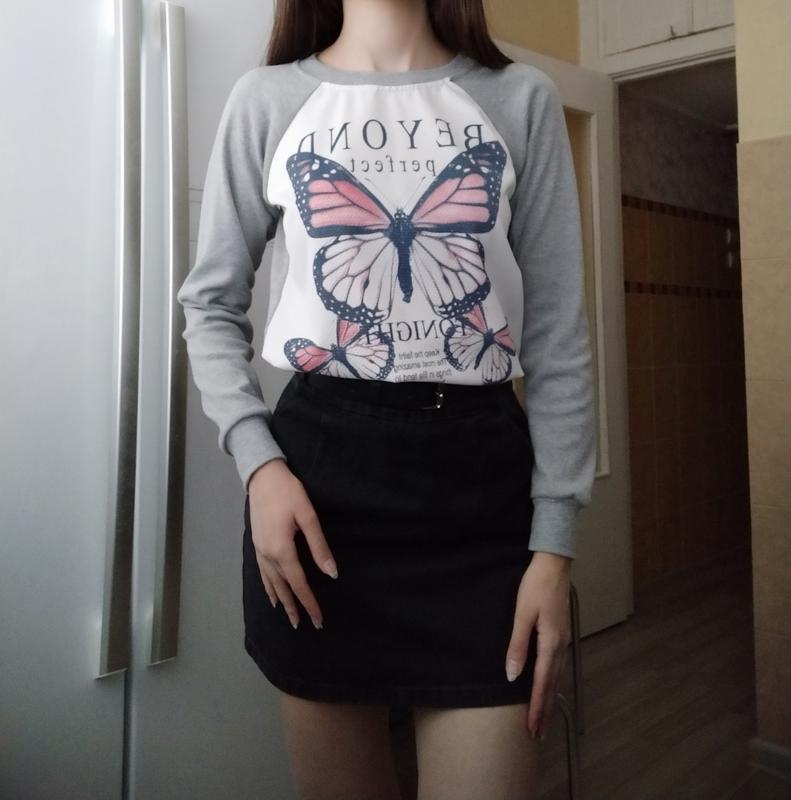 Свитшот с принтом 5/5 Цвет: серый Размер: xs