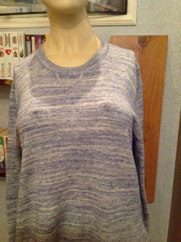 Натуральный свитшот - туника бренда Livei, р. 50-52. Прекрасный состав ткани: 52% хлопок, 48% вискоза. Замечательная меланжево - синяя расцветка. Мерочки: ПОГ 52см (тянется до 58см), длина по спинке 75см, рукав 49см, ПОБ 56см.