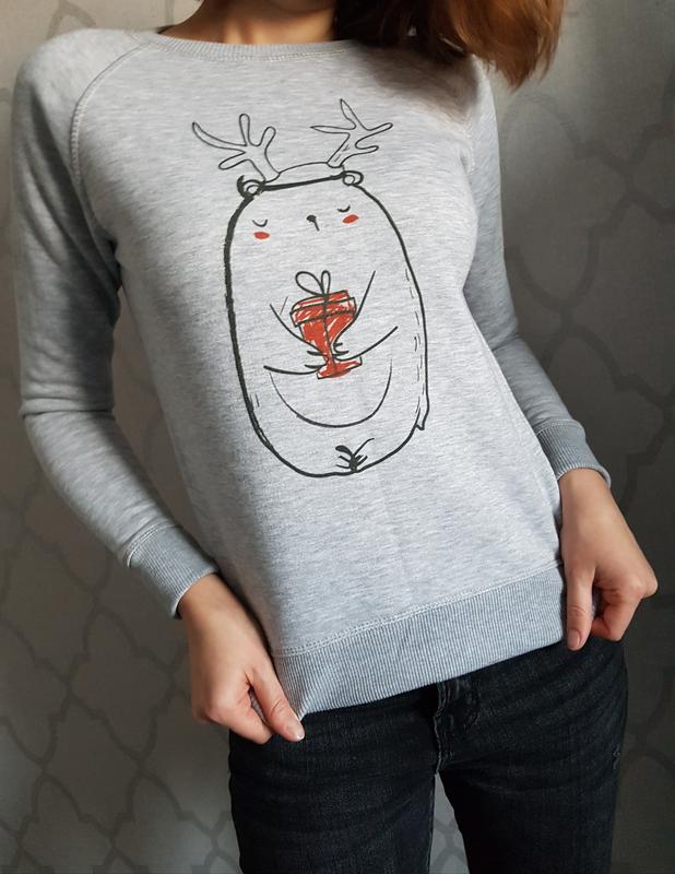 Утеплённый новогодний свитшот с оленем. Не оверсайз. Есть с таким же прином мужской, размер М.
