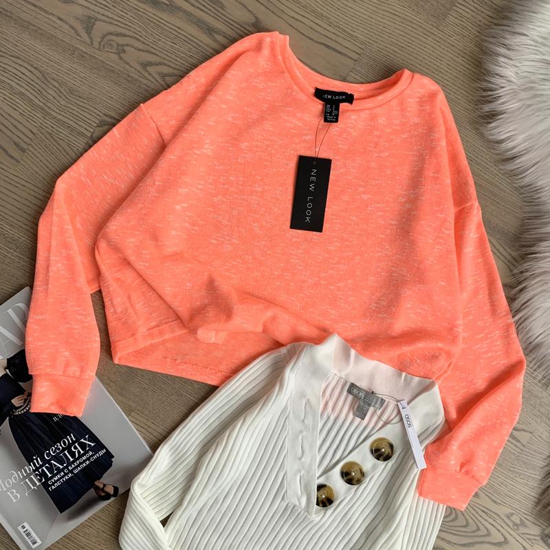 Яркий укорочённый свитшот New Look Фасон свободный, длинный рукав, ткань мягкая машинная вязка. Качество🔥🔥🔥 Размер S, подходит и для М. Цвет персик неон. •ПОГ 55 см; •Длина 49 см; •Рукав (приспущен) от горловины 72 см.