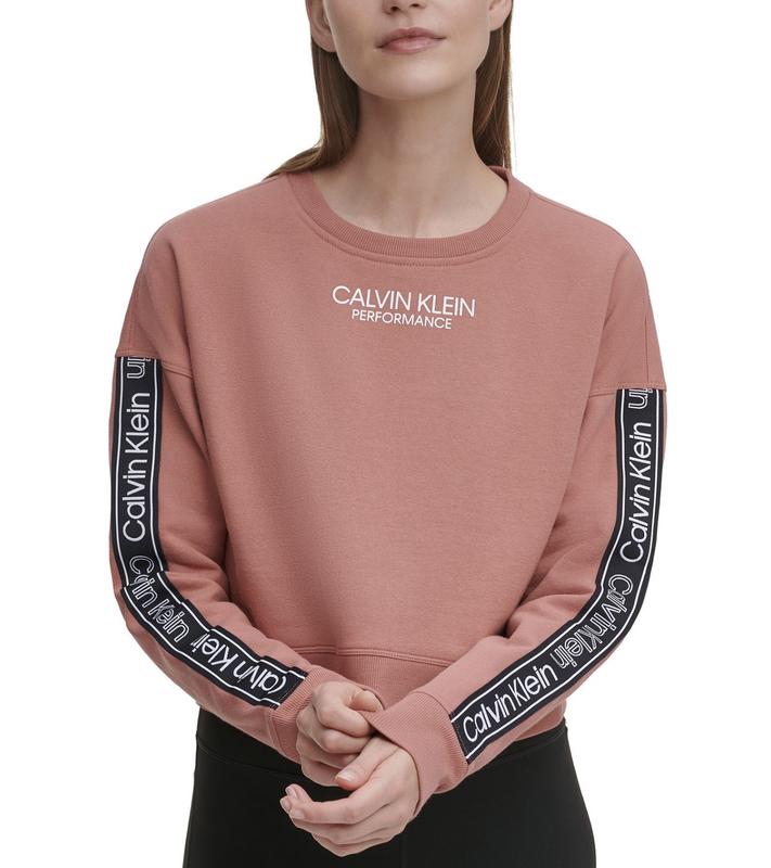 Свитшот от Calvin Klein Performance: •утеплён флисом; •на груди логотип бренда; •на рукавах лампасы с логотипами бренда; •рукав спущен; •укорочен, идеально под леггинсы с высокой посадкой. В наличии размер S: ПОГ 52; длина 46; рукав 50 см.