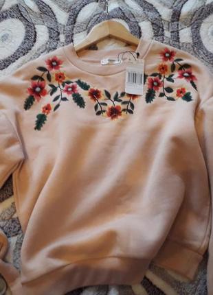 Оригинальная кофта от известного бренда Манго, утепленная на байка, рукав к низу воланом на завязки, цвет нежно-персиковый, продаю всвязи набором веса, очень красивый и стильный