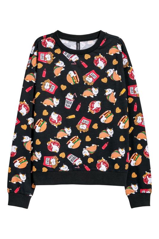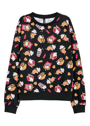 Новый свитшот с котиками от H&M. Размер М. Цвет чёрный с разноцветным принтом.