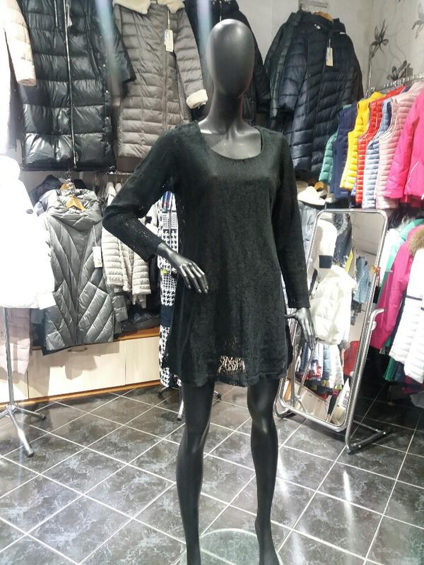 Жіноча ужурна кофта ,туніка (плаття)чорного кольору з підкладкою з середини,стильно і актуально виглядає,заміри ог - 50 (тянеться до 57)довж від плеча 84, Італія