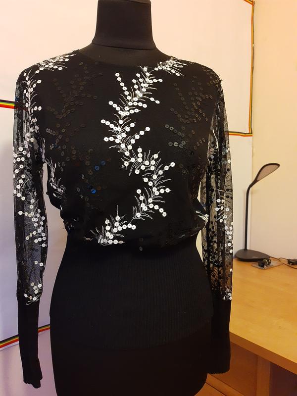 Кофточка,перед прозорий,сітка вишита паєтками,зад тонкий трикотаж
