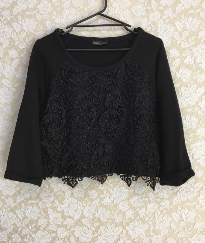 Красивая укорочённая кофточка / свитшот Состояние новой Размер указан XL, возможно подойдёт и на M-L Пог 53см Длина 47см Отправлю Новой почтой или Укр
