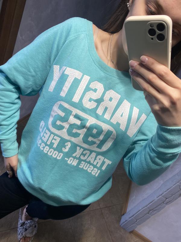 Стильна бірюзова кофтинка з надписами Ззаду цифра 55 Розмір L