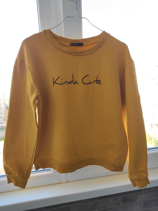 Свитшот бренда Stradivarius, размер S. В отличном состоянии, без дефектов. Цвет горчичный. Замеры: Длина 53см. Длина рукава 52,5см. Ширина под мышками 51см. Ширина по низу 47,5см.