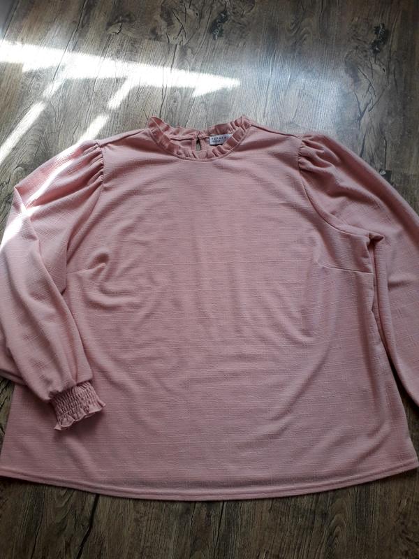 Ніжна кофточка великого розміру. Ніжно рожевий колір. Фактурна тканина тягнеться. Виглядає дуже оригінально. Пог 67 тягнеться 78 см