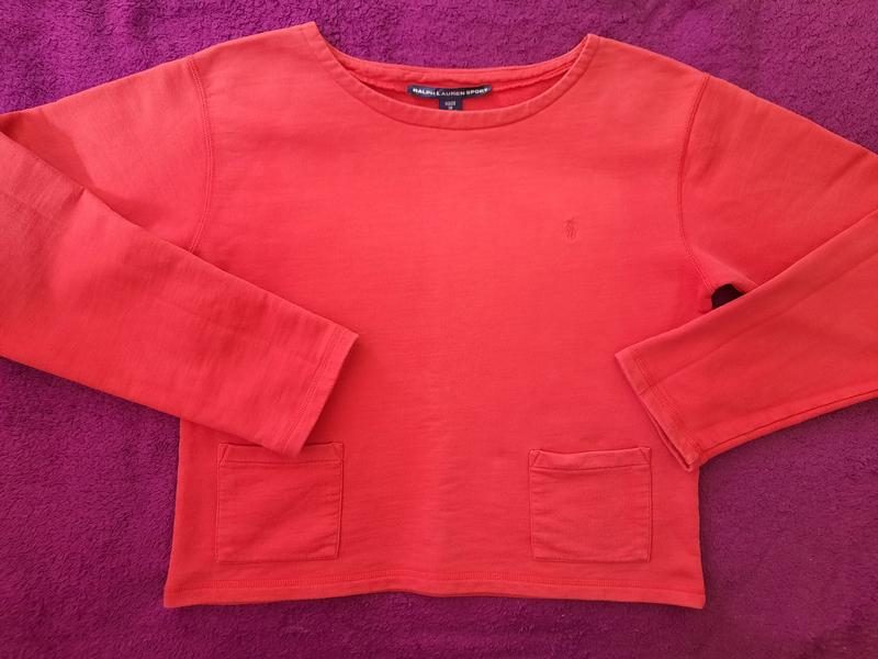 Красный(неяркий и не бледный) томатный цвет. Два кармашка-10.5х10.5 ПОГ-49 Ширина(низ)-50 Рукав приспущен-57 Длина по спинке-49 В отличном состоянии.