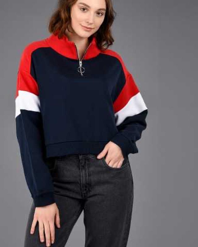 Короткий світшот з футера з коміром стійкою і блискавкою зверху. На свитшоте трикотажна гумка внизу рукавів і по нижньому краю. М'яка виворітна сторона з начосом. СоставХлопок 60%, Поліестер 40%Тасьма з гумової жилкою: Бавовна 57%, Поліестер 38%, Еластан 5%