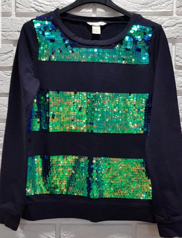 Шикарный джемпер , кофта с пайетками H&M в отличном состоянии. Размер XS. Цвет тёмный синий. Замеры : Сг 42 см, Сб 40 см Ди 56 см , Др 57 см