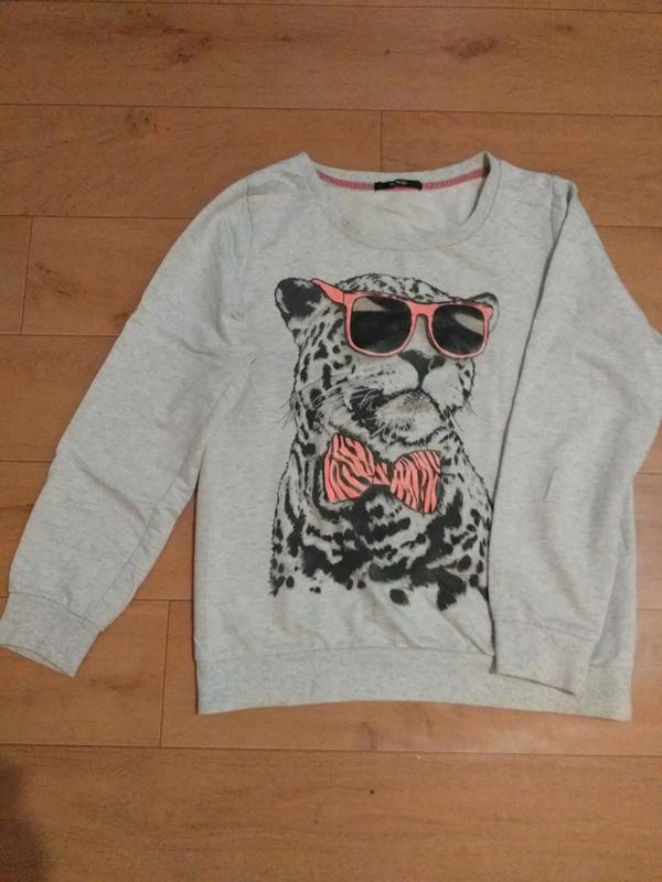 Актуальний світшот,кофта з принтом тигреня,в ідеальному стані. Заміри-Довжина від горловини 60 см,Пог 52 см,рукав від плеча 60,61 см,розмір 12