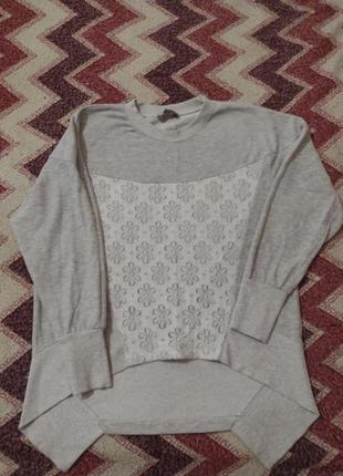 Класна кофта в стилі casual, якісна, італійська! Довжина 57 (по спинці 67) ПОГ - 55 Рукав від плечового шва - 45 (занижене плечі). Розмір Л/ХЛ Спереду - мереживо.
