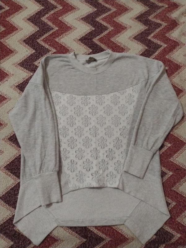 Класна кофта в стилі casual, якісна, італійська! Довжина 57 (по спинці 67) ПОГ - 55 Рукав від плечового шва - 45 (занижене плече). Розмір Л/ХЛ Спереду - мереживо.