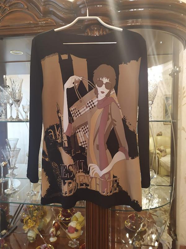Кофточка действительно очень классная, стильная, модная, смотрится просто потрясающе. Это шикарная вещь, тонкая, приятная к телу. Ткань полиэстер, умеренно тянется не теряя форму. Она изумительна, просто бомба! В идеальном состоянии, без дефектов. Рекомендую на 46-48 размер, может быть и 50 будет в обтяжку, кто как любит. Смотрите мои замеры : ПОГ-50-52, ПОТ-44-46, низ - 54-56, длина -66, рукав - 55. Оплата на карточку приватбанка, отправка любым почтовым перевозчиком. Никаких других способов пересылки и оплаты нет. Перед покупкой уточняйте наличие и условия пересылки.