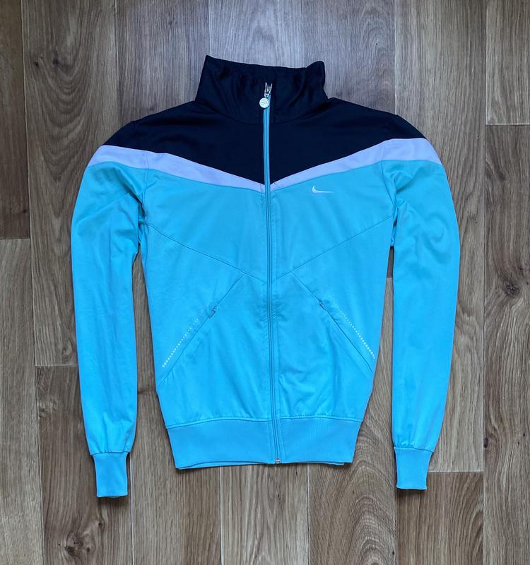 Размер S-M (плечи 40, подмышки 48, длина 58, рукав от шеи 71) Крутая спортивная кофта на молнии от мирового бренда. Логотип спереди. Карманы на замках. Бирюзовый цвет. Прекрасно дополнит ваш гардероб