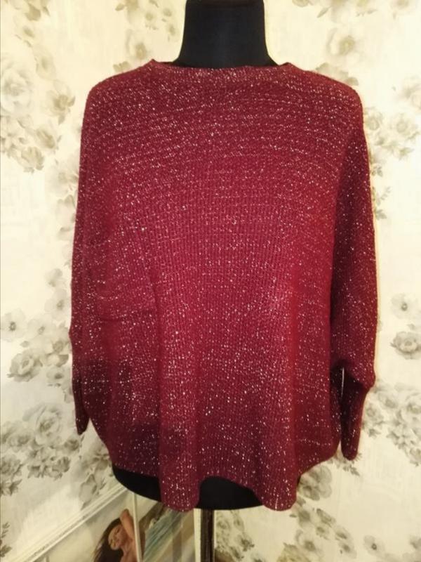 Широкий бардовый свитшот марсала с люрексом. Очень красивый. Плечи спущен, по низу балахоном