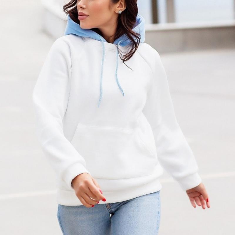 Світшот FZ-0405 455 Розміри: 42-46 Тканина трехнитка Кольори - рожевий+жовтий,блакитний+рожевий,білий+блакитний Тепле худі, з подвійним капюшоном,зручним кишенею кенгуру. ----------------------------------------