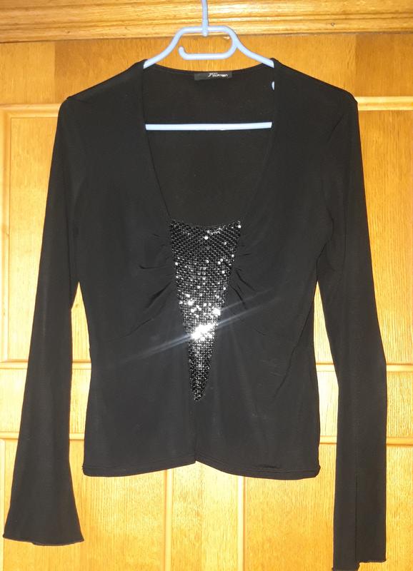 Оригінальна річ дещо не звична проте підійде для особливих подій. Має глибоке декольте і дуже ефектно виглядає. Комбінувати можна як з брюками так і з спідницею. Взагалі олягалась лише раз, а тепер уже в розмір не сидить як треба. Я з радістю відповім на всі питання