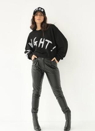 Размеры С,М и Л.Свитшотов много не бывает: для базового гардероба отличный вариант - однотонный свитшот, а вот модель с принтом станет ярким акцентом в Вашем повседневном образе. Наша стильная новинка имеет свободный фасон со спущенной линией плеча. Рукава – длинные, втачные. Линия плеча - спущенная. Круглый вырез горловины, рукава , низ изделия обработаны рибаной. Такая объемная удлиненная модель станет отличным дополнением повседневного городского стиля. Свитшот красиво смотрится с джинсами, со спортивной одеждой и обувью, в многослойных расслабленных образах.