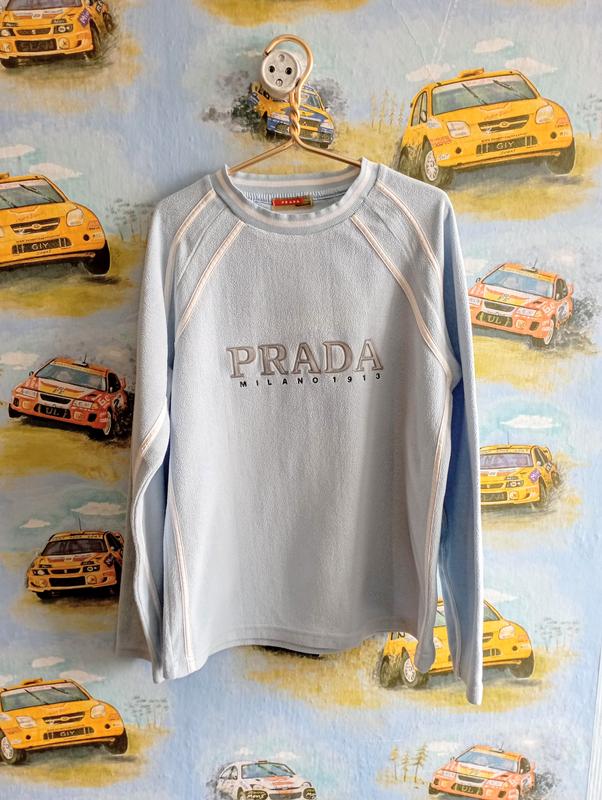 Prada свитер свитшот . В хорошем состоянии. Нежного голубого цвета. Ткань свитера мягкая, приятная на ощупь. Есть незначительные следы носки. Сам свитер без дырок. Края на рукавах, внизу, по бокам вся ткань целая без потертостей в отличном состоянии. Ньюанс только по рукавах на белых полосках-окантовках немного протерлась ткань и спереди на свитере еле заметные пятнышки. (последние фото) Замеры : длина по спине - 55 см, длина рукава от горловины - 64 см, полуобхват под мышками - 46 см, полуобъем низа - 46 см. Спрашивайте дополнительные замеры или фото, я с радостью отвечу Вам! Доставку оплачивает покупатель самостоятельно, на почте, при получении посылки.
