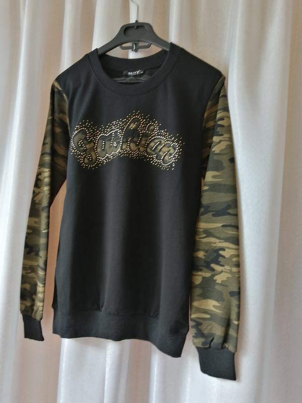 Свитшот страза хаки милитари камуфляж размер м плечи 39 см длина рукав 61 см ширина резинк...