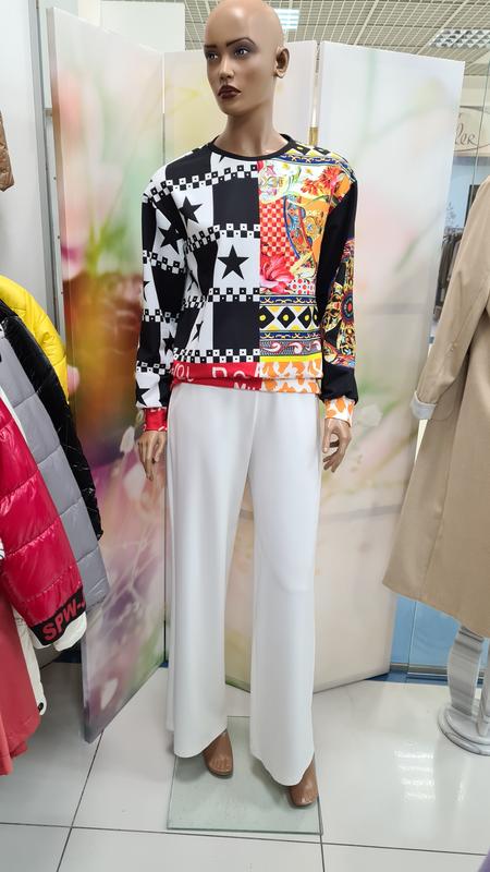 Стильный Свитшот производства Турция, фирма SAY. Очень яркая и необычная модель, которая всегда будет смотреться вне времени и может носиться как под классический стиль одежды, так и под джинсы. Свитшот с небольшим количеством эластана. Рукавчики и низ модели - манжет. Модель идёт удлинённая. Дополнительные фото и замеры отправим по запросу, товар весь в наличии. Размер указанный 36, 38, 40, 42, БОЛЬШИМЕРИТ, фактически идёт до 48-50 размера. Брючки тоже в продаже. Розмір 42 вказаний Великомірить. Полуобхват груді - 59см Полуобхват стегон - 58см, манжет тягнеться Довжина виробу - 67см Довжина рукава від горловини - 76см Также смотрите другие модели в моей ленте. Приятного просмотра ⚘🌼🌺. 🔥🔥🔥🔥