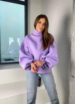 Розмір єдиний Колір ніжний бузок Рукави ліхтарик до низу Комір трансформер Висока якість пошиття та тканини. Тканина тринитка на флісі