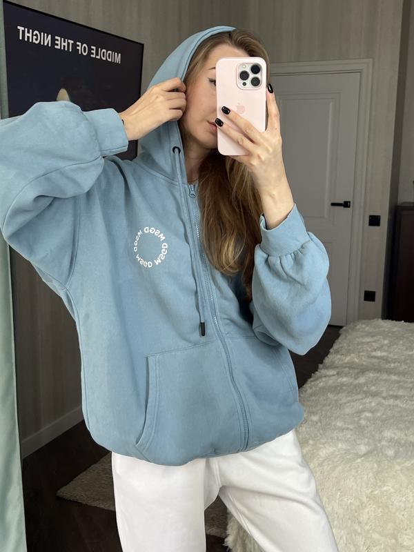 Кофта на замку Колір: голубий Розмір: L Заміри: Ог 64 см Довжина кофти 70 см Довжина рукава від горловини 80 см. Заміри зроблені по виробу