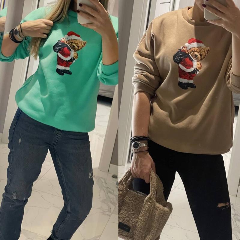 Святкова толстовка ☃️🎁🎄 арт. pani. 436 Колір: беж, зелений Розміри: one size Тканина: тринитка на флісі Стильна жіноча толстовка із заниженою лінією плечей та якісним накатом Ціна 550 грн