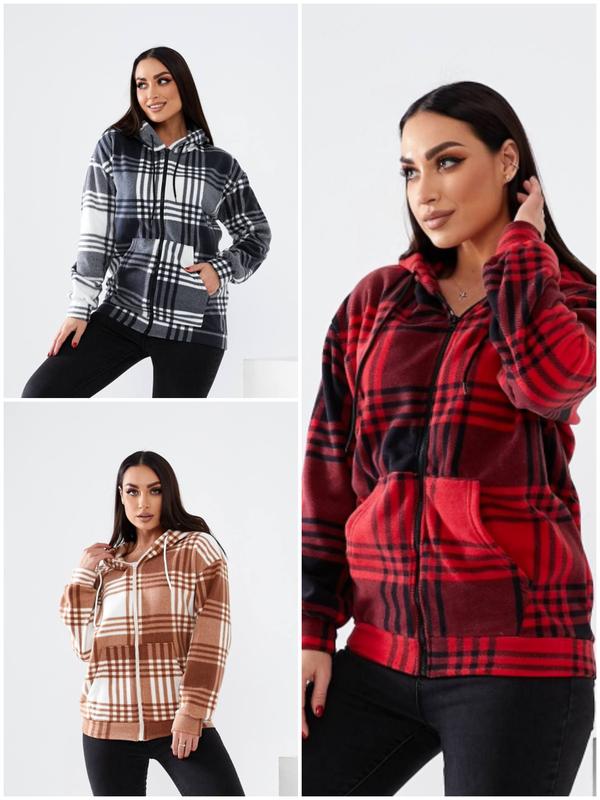 Кофта тепла флісова модель – 616-5316-4440 ✨ Матеріал: турецький фліс принт клітина, люкс якість Розміри: 42-44, 46-48, 50-52, 54-56 Ціна: 900грн (42-44, 46-48) Ціна: 960 (50-52, 54-56) Кольори: бежевий, червоний, чорний Тепла та мега стильна подсягдена кофта. Кофта вільного крою з капюшоном та кишенею кенгуру, на змійці. Матеріал дуже високої якості. ВИМІРИ: 42-44: ОГ-118см, ОС-98см, довжина виробу – 73см Довжина рукава по внутр.шву - 48см 46-48 ОГ-130см, ОС-106см, довжина виробу – 75см Довжина рукава по внутр.шву - 48см 50-52 ОГ-138см, ОС-116см, довжина виробу – 75см Довжина рукава по внутр.шву - 48см 54-56 ОГ-148см, ОС-126см, довжина виробу – 76см Довжина рукава по внутр.шву - 48см