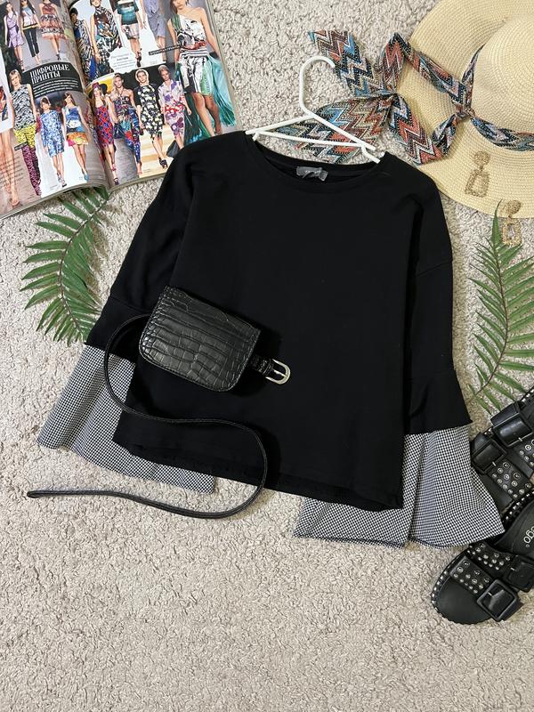Для більш точного визначення, виміри, порівнюйте із вимірами подібної речі, а не зі своїми обсягами. Актуальна укорочена оверсайз толстовка з рукавами кльош. Тканина трикотаж, щільна, тягнеться. Лінія плечей спущена. Рукави кльош зі вставкою в клітинку. Стан: ідеальний. Дефекти: рожева пляма на рукаві. Розмір на бірці: 14/42 (Виміри виробу вимірюються в напівобхваті, а не від шва до шва!) Виміри виробу: Плечі 58см., Рукав від горловини 63см., Ширина рукава 21см., напівобхват грудей 52см., низ 50см. довжина по спині 52см. довжина від плеча 54см., склад тканини: 100% бавовна, вставка 53% бавовна, 47% поліестер. Країна виробник: Туреччина. Бренд: Primark. Оплата і доставка: Оплата на картку монобанк. Бронювання на оплату тільки 24 г. При змінах наміру купувати обов'язково повідомляйте! Доставка: На час введення воєнного стану, уточнюйте, чи можлива доставка до Вашого пункту. Актуальні новини можна уточнити на сайті перевізника та за номером телефону контакт-центрів. Не забудьте ПІДПИСАТИСЯ, щоб бути в курсі всіх новинок та розпродажів!