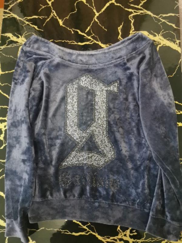Велюрова кофта Galliano,вказано L,пофакиу на М,можна і на S ,як овер,плечі відкриті приспущені.,рукав повноцінний,пог 59 резинка внизу 44 довжина 58-59