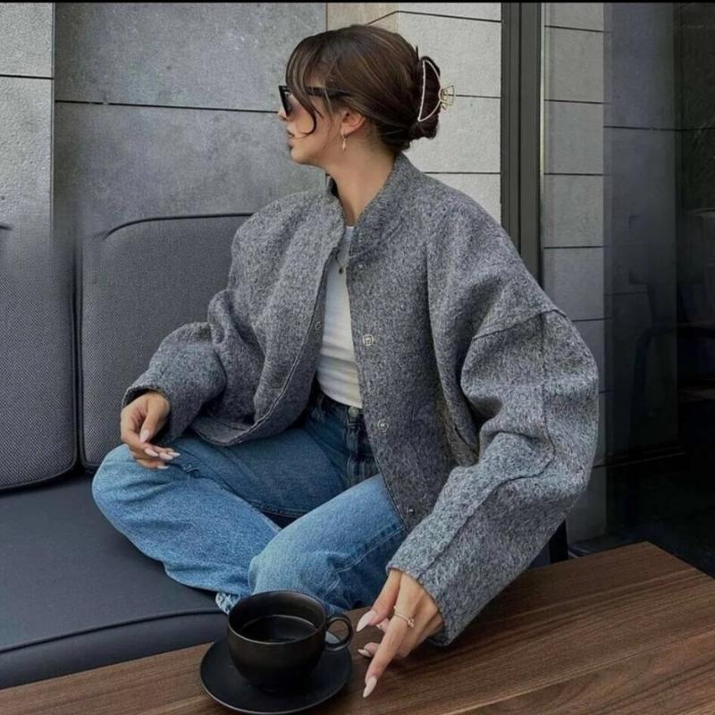 стильный бомбер в стили zara на кнопках спрятанных под планкой. Ткань букле Размер s,l Длина изделия 63 длина рукава 74 Ог 120 от 116