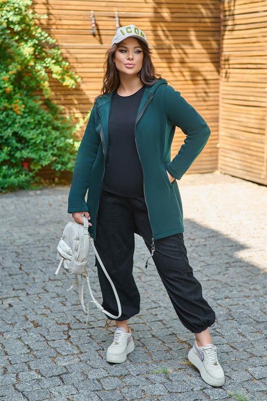 Тканина-триніть на флісі Р-ри-46-48; 50-52; 54-56; 58-60 Кольори: бутилка, морсал, синій Виміри 46-48 ОГ-104см ОБ-112см Рукав від плечового шва-63см Довжина зада по спинці-86см Довжина переда від плечового шва -83см Виміри 50-52 ОГ-112см ОБ-120см Рукав від плечового шва-63см Довжина зада по спинці-86см Довжина переда від плечового шва -83см Виміри 54-56 ОГ-120см ОБ-128см Рукав від плечового шва-63см Довжина зада по спинці-86см Довжина переда від плечового шва -83см Виміри 58-60 ОГ-128см ОБ-136см Рукав від плечового шва-63см Довжина зада по спинці-86см Довжина переда від плечового шва -83см Заміри зроблені в спокійному стані виробу, враховуйте, те що тканина дуже добре тягнеться. vv
