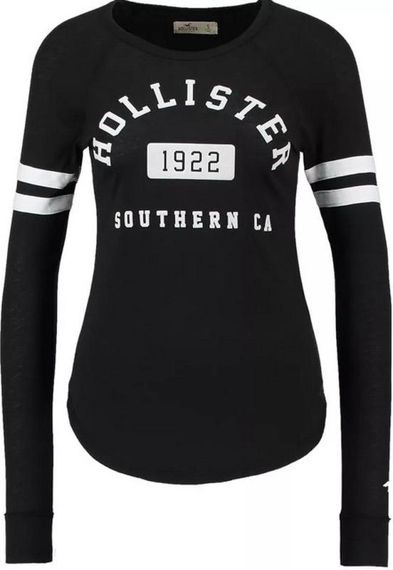 Лонгслив реглан Hollister черный с велюровым принтом, логотипом на рукаве, Очень мягкая, приятная к телу ткань 60% хлопок, 40% полиэстер Размер XS Длина 63 см длина рукава от горла 72 см ширина 36 см