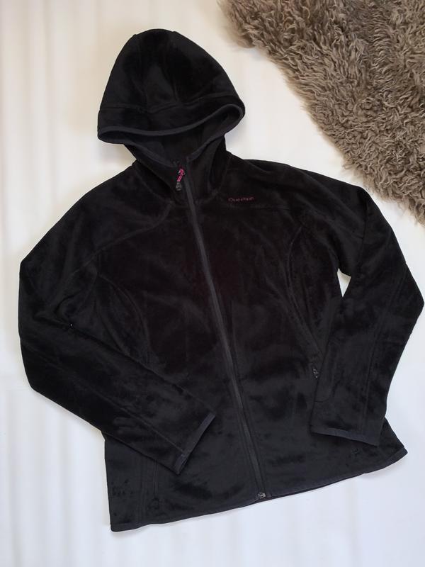 Стан дуже хороший Фліс щільний, зовнішня частина - плюшева, всередині звичайний фліс Потребує чистки зсередини, бо таке відчуття, що вдягали поверх чогось пухового ( трохи почистили самі, але доводити до ідеалу немає часу ) Розмір L/XL Рукав від горловини 74 см Ширина під пахвами 53 см Довжина по спинці від капюшона 65 см