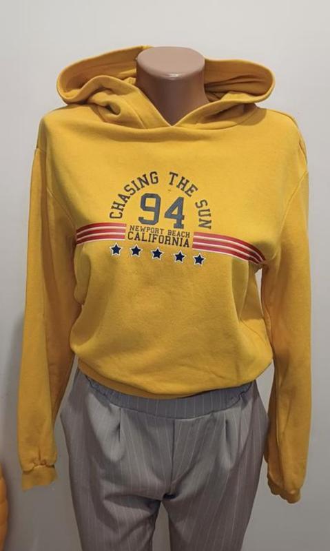 Стильная толстовка, свитшот, реглан, кофта, капюшонка от бренда Divided Размер EUR XS, S 34-36, 42-44 длина 48 см длина рукава 56 см ПОГ 55 см ПОБ 41 см Состав: 60%котон, 40% полиэстер
