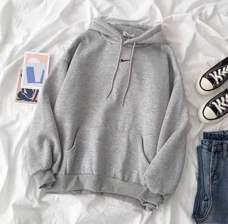 Мод 293 Тканина : 3-нитка Цвета: черный, серый, белый Размеры : 42-48 Цена : 450 грн Осенне-зимняя однотонная женская толстовка с капюшоном с длинным рукавом, свободного кроя
