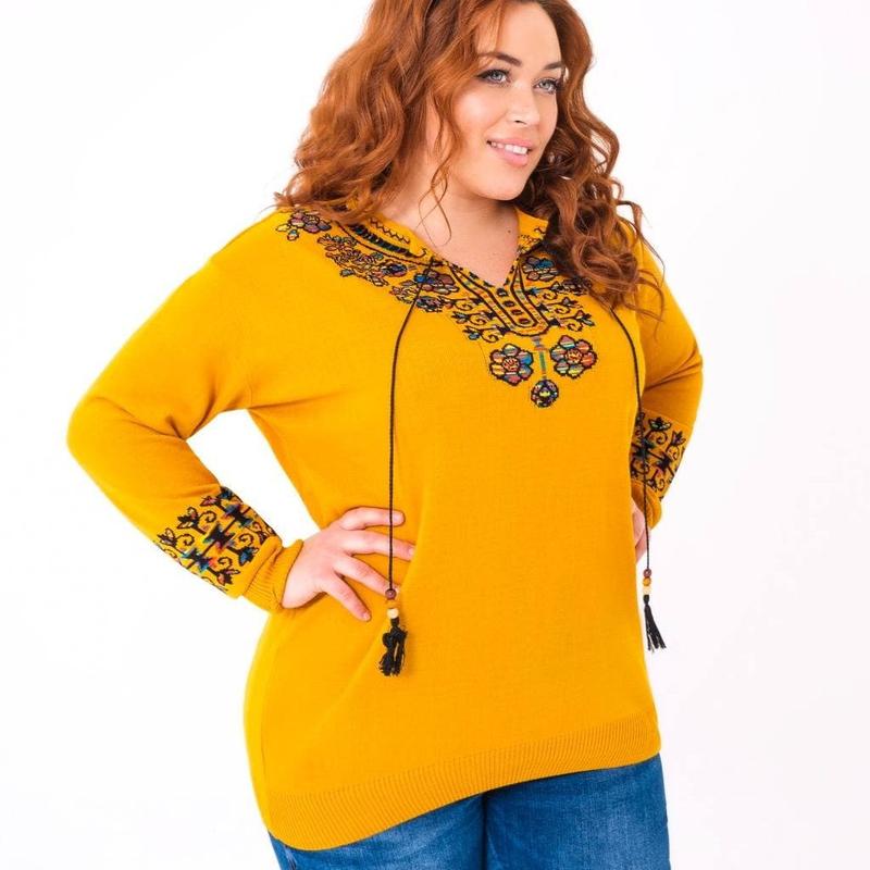 Джемпер с вышиванкой горчичный(желтый), 44-48